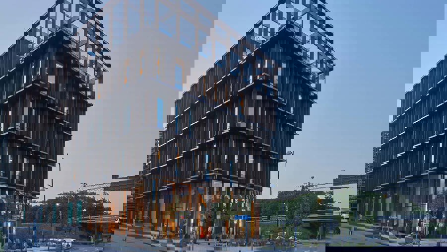 Nodi was one of Sweden’s first wooden office buildings when it was completed in 2021. The designers of the five-story building have chosen to expose as much wooden detail as possible to create a pleasant indoor environment, while keeping its climate footprint low. It has been awarded the Dezeen Architecture Award for Best Office Building.