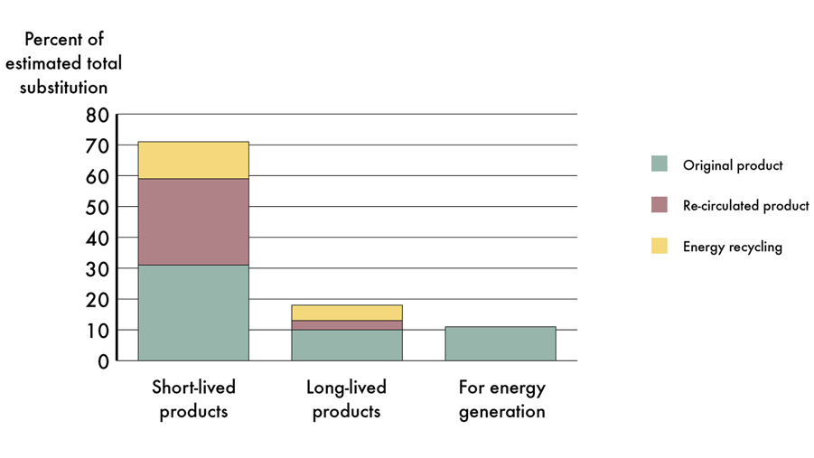 “Long-lived products contribute to extended [carbon] storage, but short-lived products with high recycling rates can account for more than 80 per cent of substitution benefits. We already know that phasing out fossil materials is good for the climate, but the importance of recycling and circularity has not been as obvious,” says Björheden.